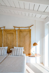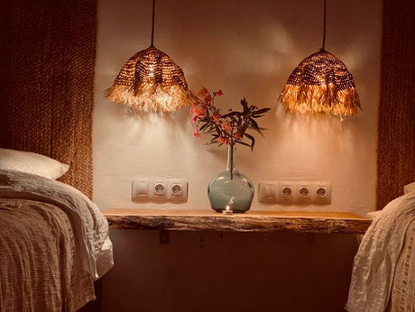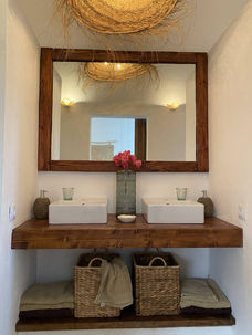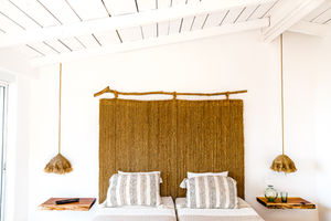 The furniture reflects its origin, Africa, a few kilometers away from the island: bamboo lightening, sea-grass on the walls, tropical wood, straw lamps, etc. The furniture is hand-made, carved with simple (minimalistic) designs inspired from primitive tribal cultures that set the ambiance of a lodge.
